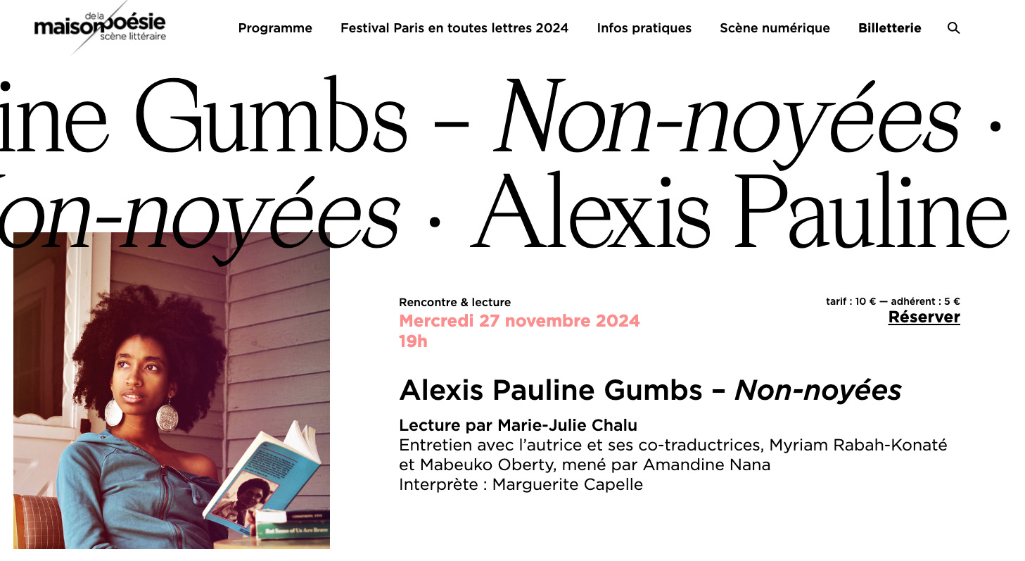Le mercredi 27 novembre 2024, on était à la Maison de la poésie (Paris) pour le lancement de Non-noyées : leçons Féministes Noires apprises auprès des Mammifères Marines.