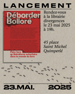 Le vendredi 23 mai 2025, on était à la Librairie Divergences (Quimperlé) pour le lancement festif de Déborder Bolloré suivi d’un DJ set.