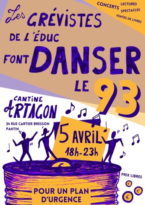 Le vendredi 05 avril 2024, on était à Artagon (Pantin) pour la soirée : « Les grévistes de l’Éduc font danser le 9-3 ».