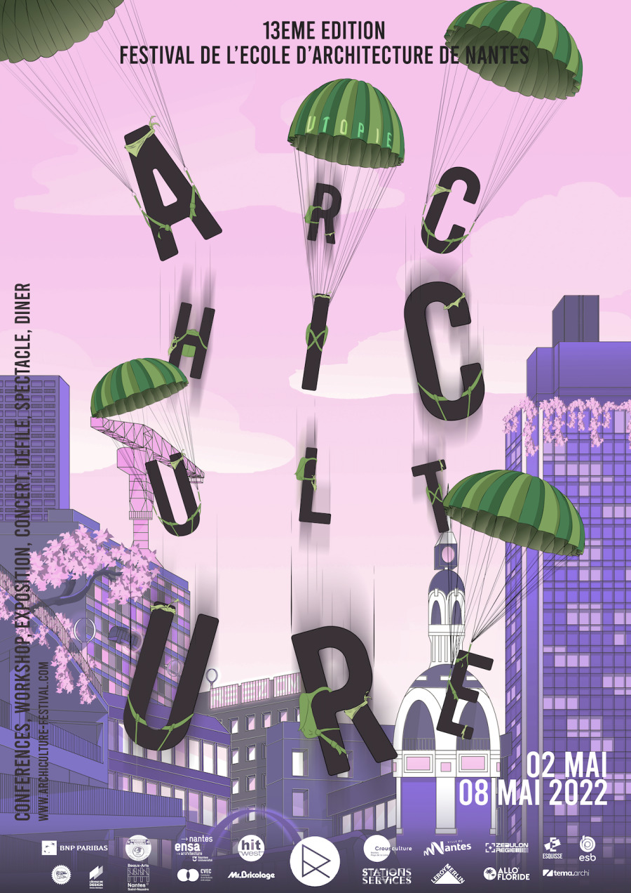 Le cycle de conférences est relancé pour le festival ! L’objectif est d’offrir aux étudiant·es la possibilité de se préparer en amont de la semaine dédiée à Archiculture, et de leur partager quelques clés de réflexion à propos de la thématique Utopie. L’utopie, présente autant dans la forme que le fond, les conférences qui sont peut-être davantage des discussions entrent véritablement dans une mise en débat. Une rencontre s’opère entre celui qui, au départ écoute, et ce même public qui finit par rejoindre les acteur·ices. Les conférences sont autant de moments qui proposeront de dépasser les possibles : penser nos manières de faire et de concevoir autrement, au travers de nouveaux outils, ou de démarches encore trop peu répandues. Elles seront une mise en lumière de celles et ceux qui tentent d’aller au-delà des limites. De celles et ceux qui portent un rêve et qui réalisent en même temps. In fine, le cycle de conférence Archiculture est une occasion unique à l’école d’architecture de participer au questionnement du monde dans lequel nous vivons, dans lequel nous vivrons !