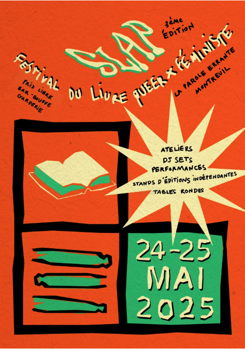 Du 24 mai 2025 au 26 mai 2025, on était à La Parole errante Demain (Montrueil) pour le SLAP, Festival du livre queer et féministe.
