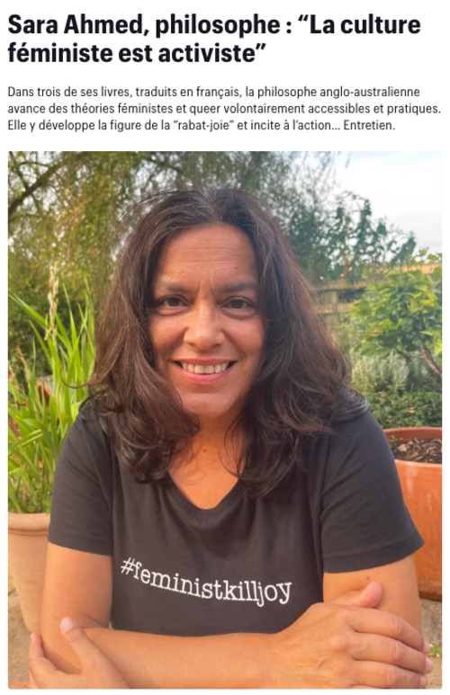 Dans trois de ses livres, traduits en français, la philosophe anglo-australienne avance des théories féministes et queer volontairement accessibles et pratiques. Elle y développe la figure de la “rabat-joie” et incite à l’action… Entretien.