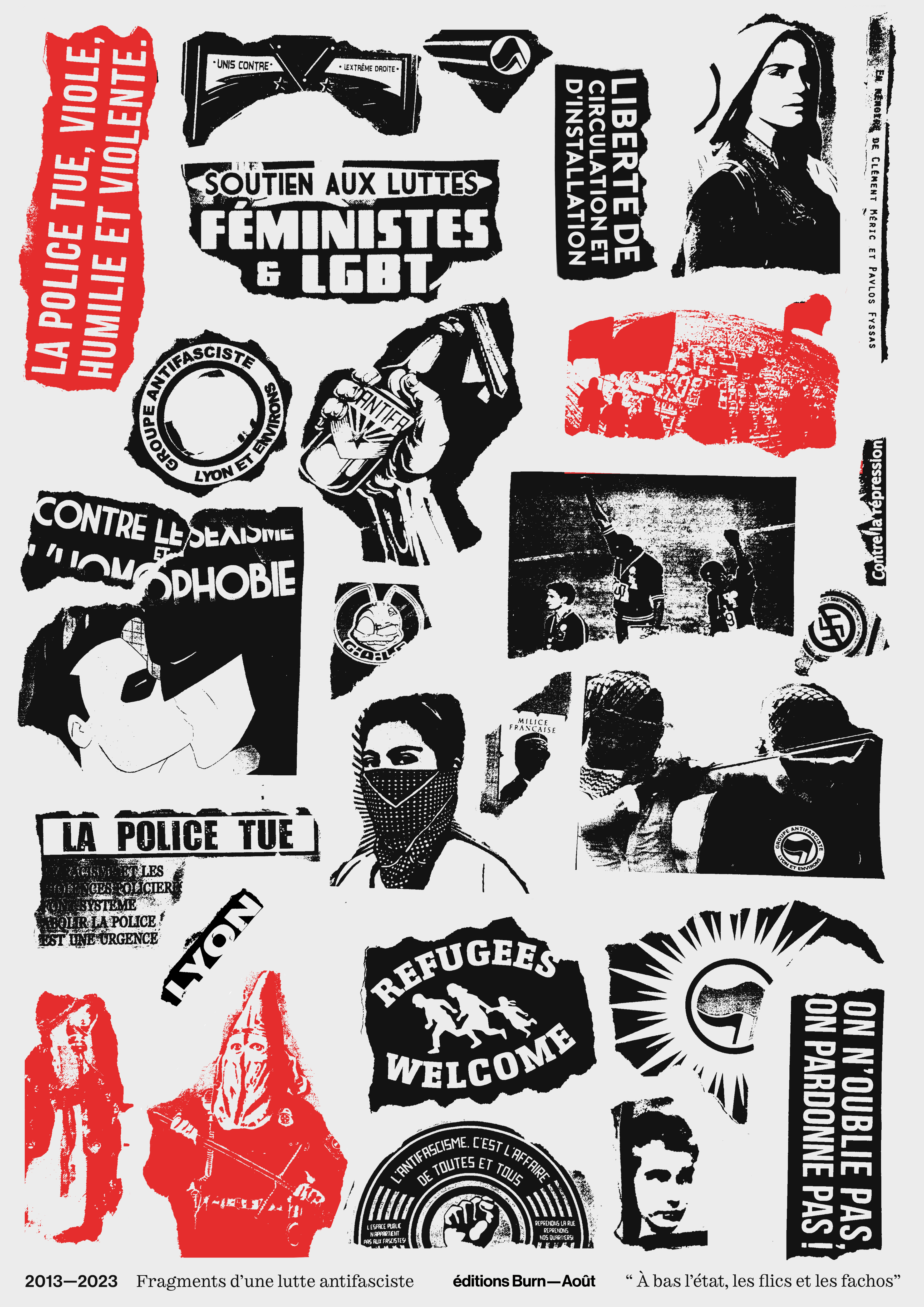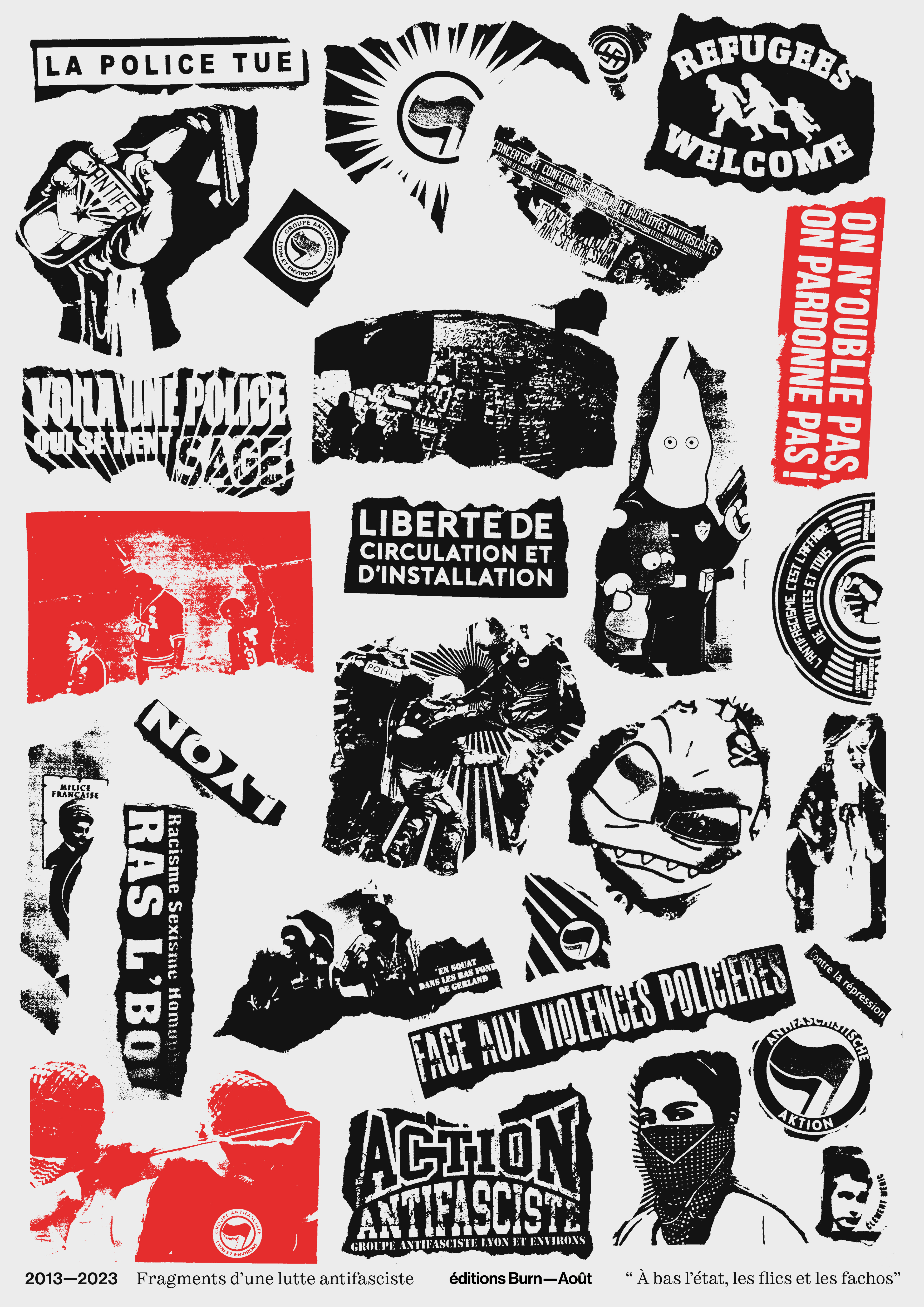 Affiche réalisée par Service Local (Clémentine L. et Gautier S.) à partir des archives de de la Gale pour la campagne de financement de l’ouvrage « À bas l’état, les flics et les fachos ».